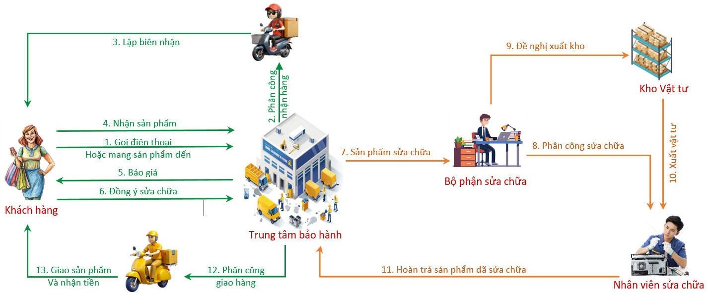 | Chi phí & Hóa đơn | Bảo hành miễn phí hoặc dịch vụ tính phí: Công, linh kiện, phụ phí. |